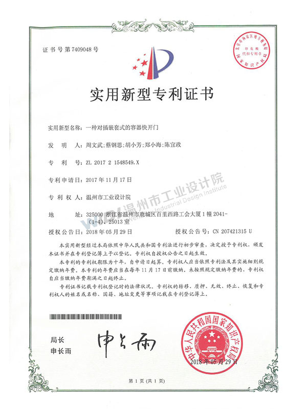 一種對插嵌套式的容器快開門
